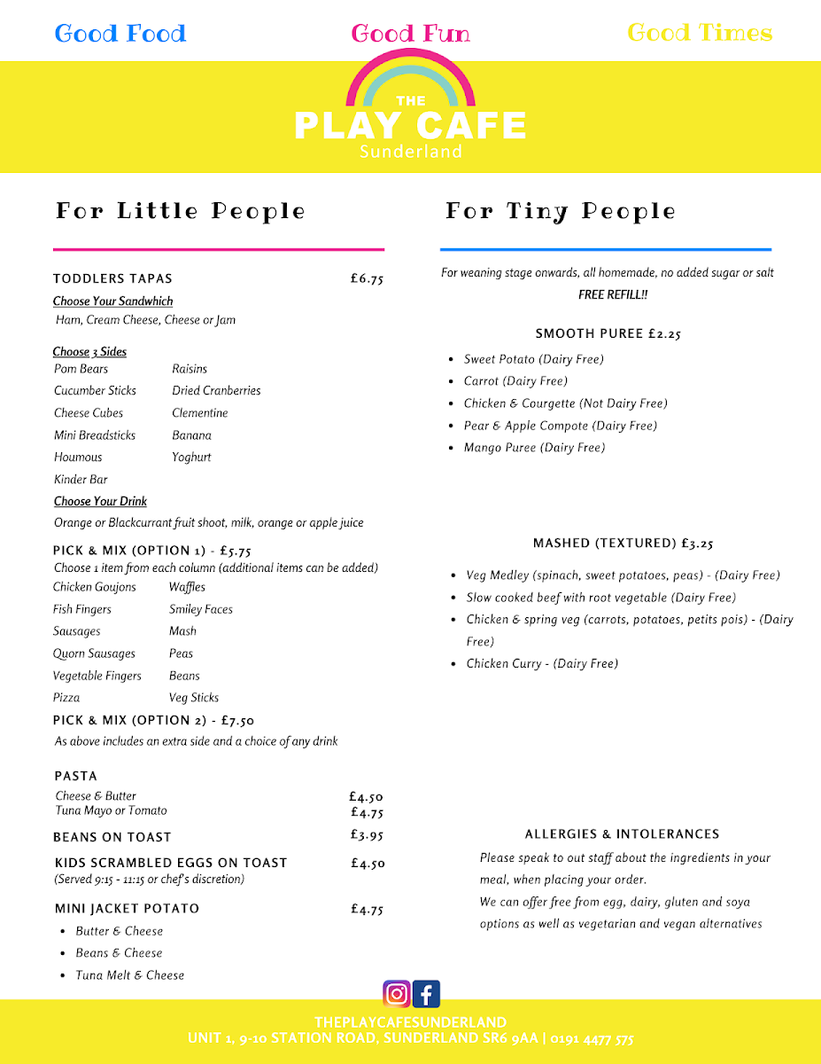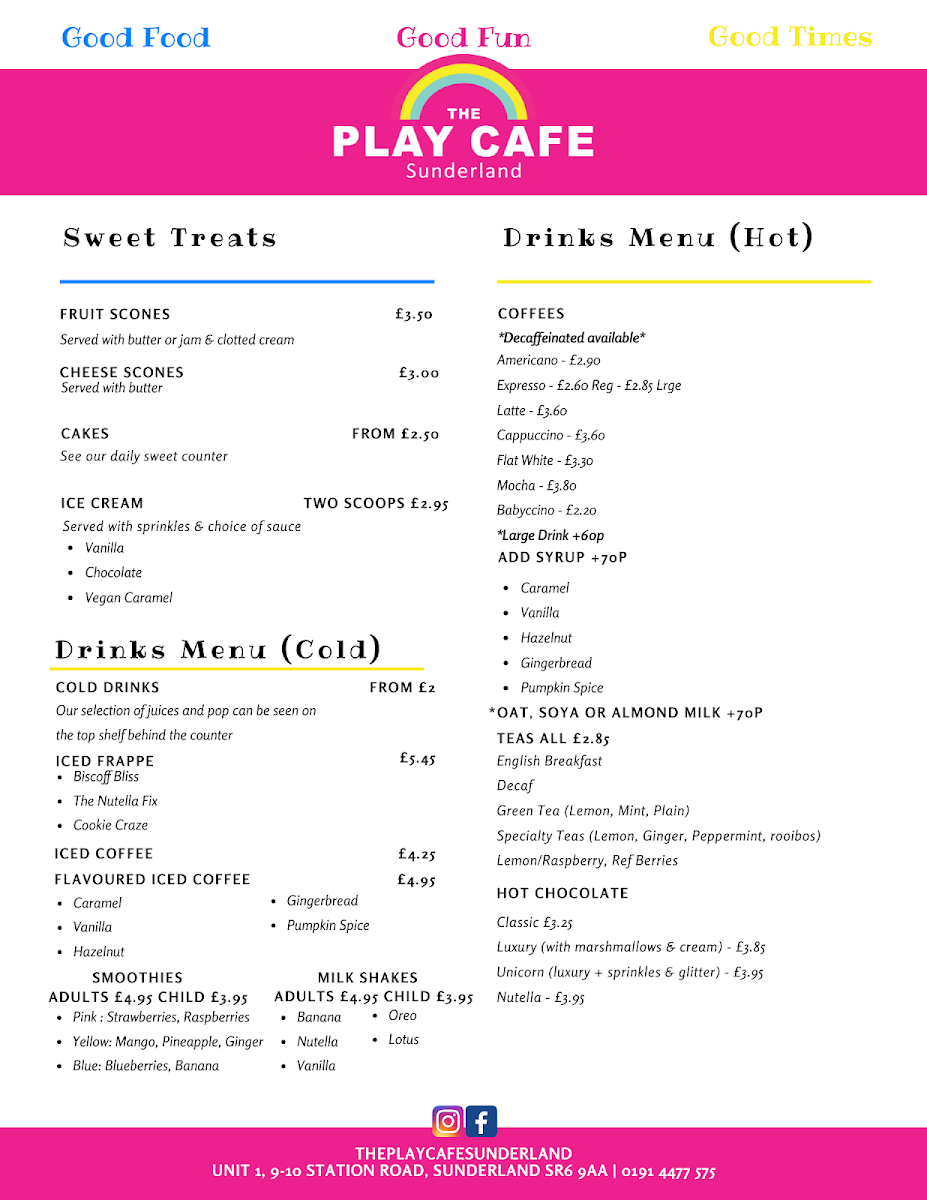 Introducing the menu at The Play Cafe Sunderland is a delightful excursion into flavorful options perfect for families. This children’s café offers a curated selection that combines nutrition and taste, making it an ideal spot for both kids and parents. Start your day with their Play Café Breakfast at just £8.95 or opt for the Toasted Banana Bread priced at £5.35. The Avocado Smash (£8.35) is a standout, blending health with deliciousness.